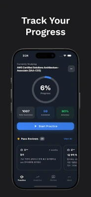 Ili kuhakikisha unajiandaa kikamilifu na kwa ujasiri, Cloud Pass inatoa uchanganuzi wa kina wa utendaji wako, ukikuruhusu kufuatilia maendeleo, usahihi, na kutambua maeneo unayohitaji kuboresha. Jukwaa hili linafunika ithibati mbalimbali za kimkakati kutoka AWS kama vile Solutions Architect, Developer, na Machine Learning, hadi Google Cloud ikiwemo Cloud Engineer, Data Engineer, na Security Engineer. Mpango mmoja wa usajili unakupa ufikiaji usio na kikomo kwa maswali yote ya ithibati zote, na kukufungulia mlango wa maarifa mengi ya wingu na mafanikio ya kitaaluma.