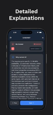 Ukiwa na Cloud Pass, utapata ufikiaji wa maswali ya mazoezi yaliyosasishwa kabisa ya mwaka 2025, yanayofanana na mitihani halisi ya ithibati zaidi ya 24 za AWS na GCP. Tofauti na njia za kawaida za kujifunza, Cloud Pass inakuwezesha kujifunza kwa kutatua changamoto za kweli. Kila swali linafuatiwa na maelezo ya kina, ya hatua kwa hatua, yakikupa ufahamu kamili wa mada husika na kuimarisha maarifa yako papo hapo. Aidha, uigaji kamili wa mitihani unapatikana ili kupima utayari wako na kukupa uzoefu wa mazingira halisi ya mtihani kabla ya siku muhimu ya kufuzu.