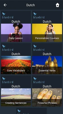 Furahia kujifunza Kiholanzi bila kutumia mikono, bila kuhitaji kuandika au kutelezesha kidole. Bluebird hukuruhusu kujifunza ukiwa unafanya mazoezi, unapika, unasafiri, au hata unapumzika nyumbani. Unaweza pia kutiririsha masomo yako kwa urahisi kwenye spika mahiri kama Google Home au Runinga yako, ukibadilisha muda wowote kuwa fursa ya kujifunza. Ili kuimarisha ujuzi wako, Bluebird inatoa kadi za flash (flashcards) na uchambuzi thabiti wa matamshi ili kuboresha lafudhi yako ya Kiholanzi. Utajifunza msamiati wa hali ya juu wa maneno 2,000, vitenzi 100 muhimu na miundo yake, jinsi ya kujenga sentensi kamili, kushughulikia hali mbalimbali za kila siku, na hata mazungumzo magumu.