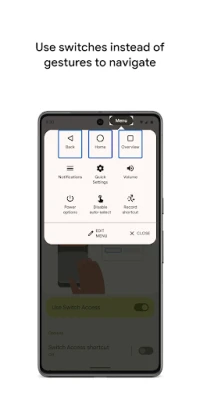 Mara tu unapochagua kipengee, menyu maalum huibuka zikikupa vitendo mbalimbali kama vile kuteua, kunakili, au kubandika, hivyo kurahisisha kazi zako za kila siku. Pia, utapata menyu muhimu zinazopatikana juu ya skrini kwa urambazaji wa haraka wa kifaa chako — kutoka kufungua arifa hadi kurudi kwenye skrini ya kwanza au kurekebisha sauti. Kipengele cha Kufikia Kupitia Swichi huenda mbali zaidi kwa kukuruhusu kurekodi ishara za kugusa za kibinafsi. Hizi zinaweza kujumuisha kubana, kukuza, kutelezesha kidole, au kugonga mara mbili, ambazo unaweza kuzihifadhi kama njia za mkato zinazoweza kuamilishwa kwa swichi moja. Fikiria kurahisisha vitendo changamano na vya mara kwa mara kwa kubonyeza kitufe kimoja tu, mfano, kugeuza kurasa mbili za kitabu pepe kwa ishara moja ya swichi. Hii inapanua sana uwezo wako wa kutumia kifaa chako kwa ufanisi.
