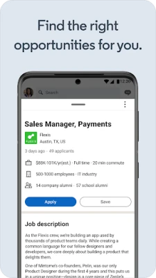 Gundua nafasi za kazi zinazolingana kikamilifu na ujuzi wako kwa kutumia zana mahiri za LinkedIn zinazoendeshwa na akili bandia. Pokea arifa za kazi zilizobinafsishwa ili usikose fursa muhimu, na tumia wasifu wako wa LinkedIn kuomba kazi kwa urahisi wa kubofya mara chache. Zaidi ya hayo, kaa mbele ya mabadiliko ya sekta kwa kupata habari za biashara na maarifa kutoka kwa viongozi wa tasnia, ukishiriki katika majadiliano yenye tija na makala shirikishi yanayopanua uelewa wako na kukuwezesha kufanya maamuzi sahihi ya kikazi.