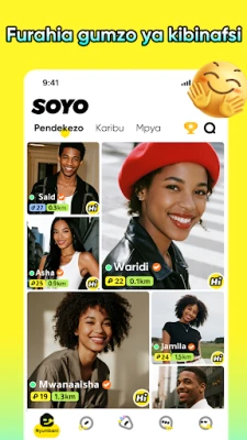 Zaidi ya miunganisho ya papo hapo, Soyo inakupa nafasi huru ya kujieleza bila woga. Zungumza kuhusu mambo yanayokuhusu, shiriki hadithi zako, au jikite katika mijadala unayoipenda; daima kuna mtu tayari kukusikiliza na kujibu. Na pale maneno yanapokosekana kuelezea hisia zako, simu za video za faragha na marafiki zako zinapatikana, ukijua kuwa wale wanaokujali wapo daima mtandaoni, usiku na mchana. Usalama na faragha yako ni nguzo muhimu kwetu. Kila mtumiaji wa Soyo amethibitishwa kuwa halisi, hivyo basi unaweza kuwasiliana kwa ujasiri ukijua unazungumza na binadamu halisi, si roboti. Jukwaa letu limejengwa juu ya misingi ya uwazi, usalama, na heshima, tukilinda taarifa zako za kibinafsi isipokuwa uamue kuzishiriki mwenyewe.