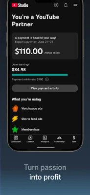 Anzisha safari yako ya kibiashara kwenye YouTube kwa ujasiri. Programu hii inarahisisha mchakato wa kutuma ombi la kujiunga na Mpango wa Washirika wa YouTube, ikikuwezesha kufungua milango ya kuchuma mapato kutokana na ubunifu na bidii yako. Simamia mapato yako na upanue fursa zako za kibiashara, ukigeuza mapenzi yako ya uundaji wa maudhui kuwa chanzo cha kipato. Programu hii ni mwandamani wako muhimu katika kila hatua ya ukuaji wa kituo chako.