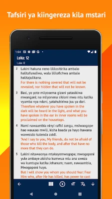 "Swahili-English Bible (Biblia Takatifu)" ni zaidi ya programu; ni lango lako la kiroho, lililoundwa mahsusi kukuletea hekima isiyo na kikomo ya Neno la Mungu popote ulipo na wakati wowote unaohitaji. Katika ulimwengu wenye mabadiliko ya kasi na mahitaji mengi, umuhimu wa kuwa na chanzo cha kudumu cha faraja, mwongozo wa kimungu, na ukweli usioyumbishwa unazidi kuongezeka. Programu hii inatoa jukwaa rahisi, la kisasa, na la kuaminika kabisa la kukuza na kuimarisha safari yako ya kiroho, ikihakikisha kwamba ujumbe wenye nguvu wa maandiko matakatifu unapatikana kwako kila wakati, iwe uko nyumbani, safarini, au katika mapumziko mafupi.