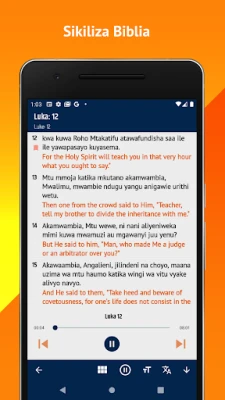 Swahili-English Bible (Biblia Takatifu) hukupa fursa ya kipekee ya kusoma na kujifunza Neno la Mungu. Pata uzoefu wa Biblia Takatifu kwa Kiswahili na Kiingereza, popote ulipo na wakati wowote unaopenda. Inakurahisishia kufahamu mafundisho muhimu.