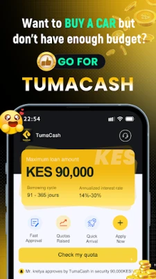 TumaCash ni mshirika wako wa kuaminika wa mikopo ya pesa. Inakupa huduma rahisi na za haraka za mikopo mtandaoni, kukuwezesha kupata msaada wa kifedha wa uhakika na wa haraka wakati wowote, mahali popote unapouhitaji.