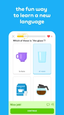 Jifunze lugha mpya na Duolingo, programu maarufu zaidi duniani ya elimu! Furahia kujifunza lugha zaidi ya 40 bure kupitia masomo mafupi. Boresha uwezo wako wa kuongea, kusoma, kusikiliza, kuandika, msamiati na sarufi.